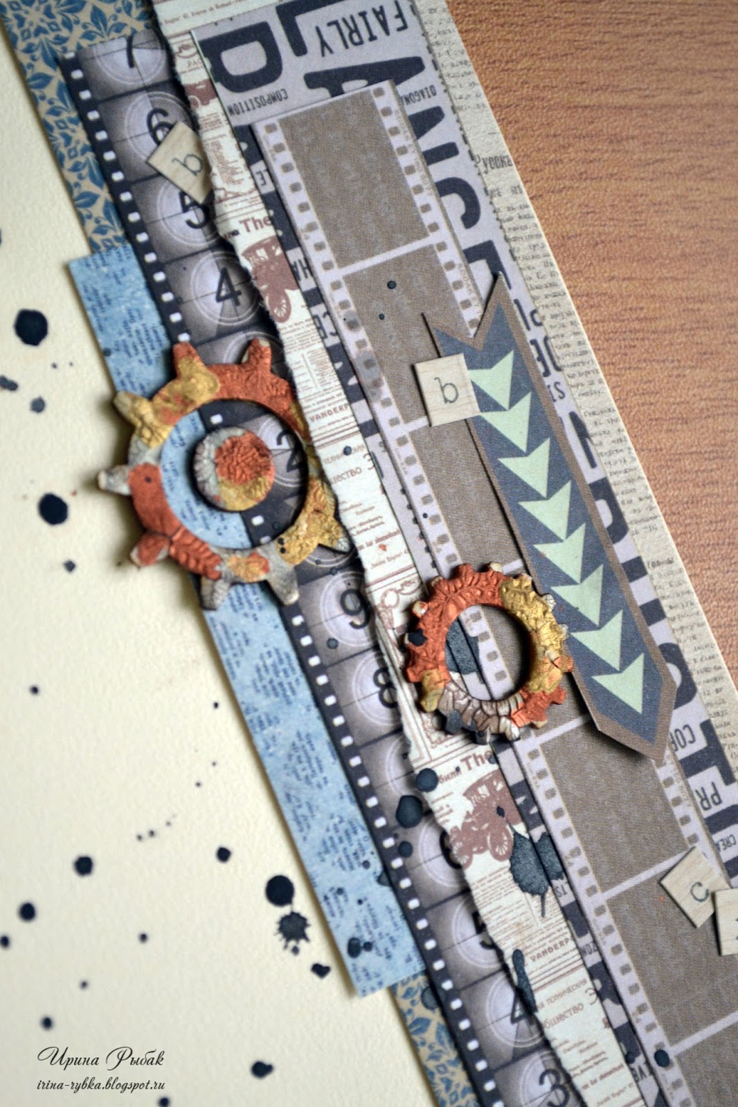 Признаюсь,я долго не могла приступить к первому развороту,никак не могла сообразить,как же уместить все на таком маленьком формате и как вообще собрать потом все кучу...